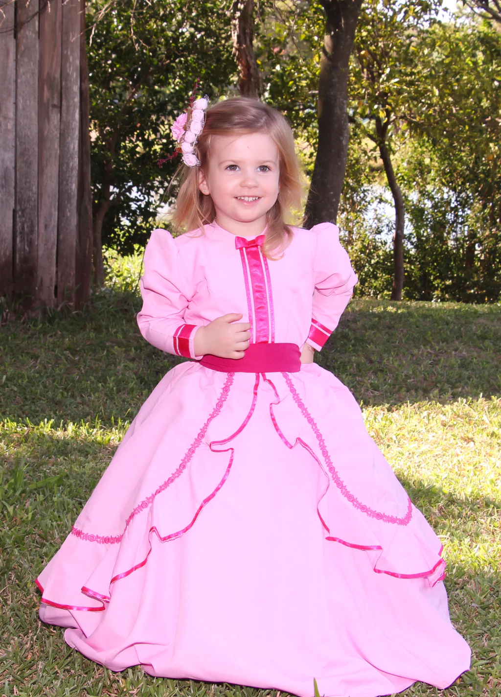 TAMANHO 14 TEM DE LARGURA DO BUSTO 85 CM E COMPRIMENTO DO OMBRO ATE O CHÃO 135 CM